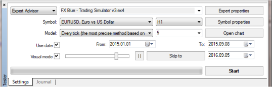 When you are ready you can start the simulation using the button in the MT4 strategy tester or the equivalent button in the Simulator itself.